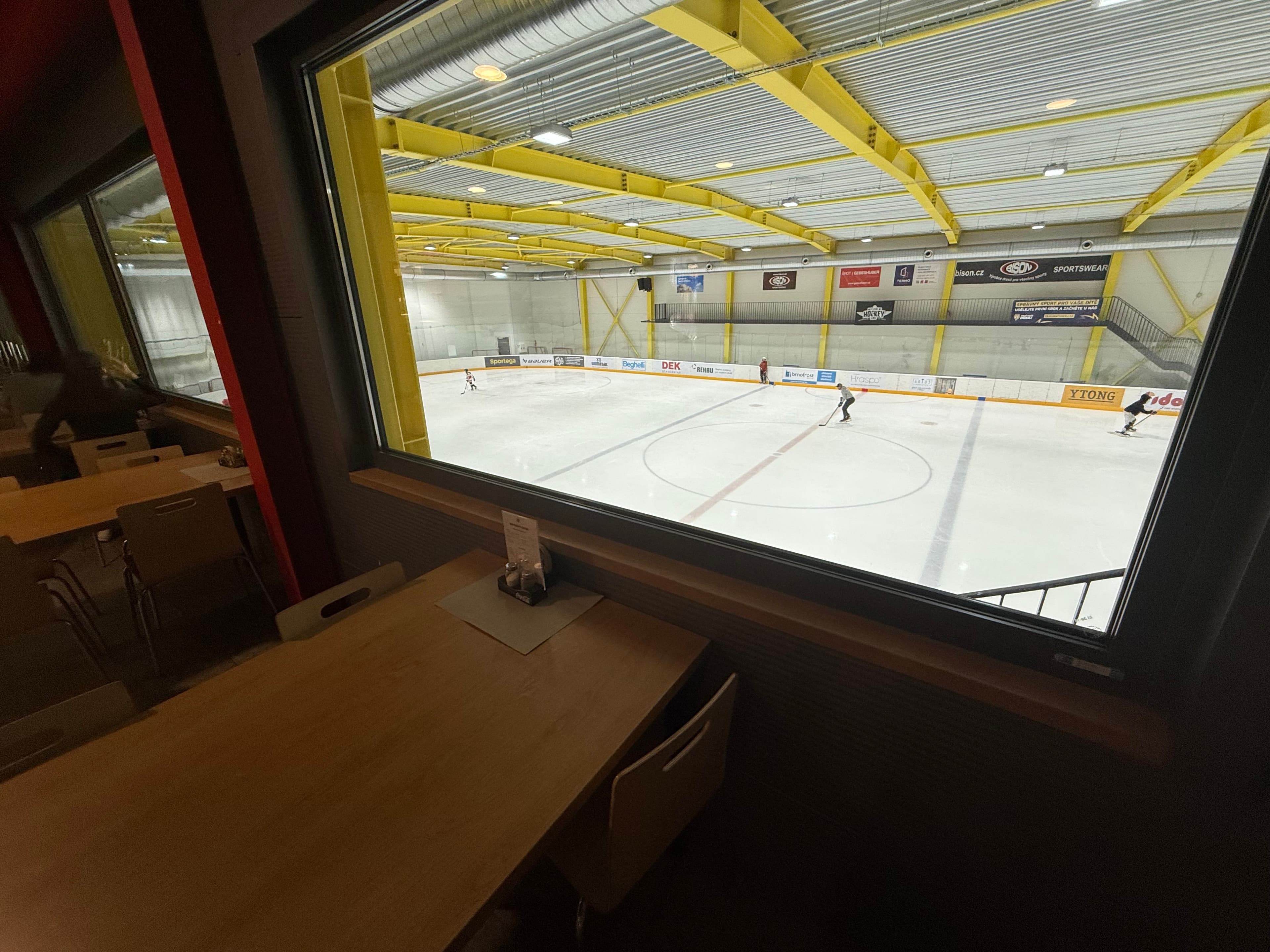Restaurace je přístupná nejen návštěvníkům centra, ale i široké veřejnosti. Díky velkému prosklenému výhledu na ledovou plochu si můžete vychutnat kávu, oběd nebo večeři a zároveň sledovat zápas, trénink nebo veřejné bruslení.